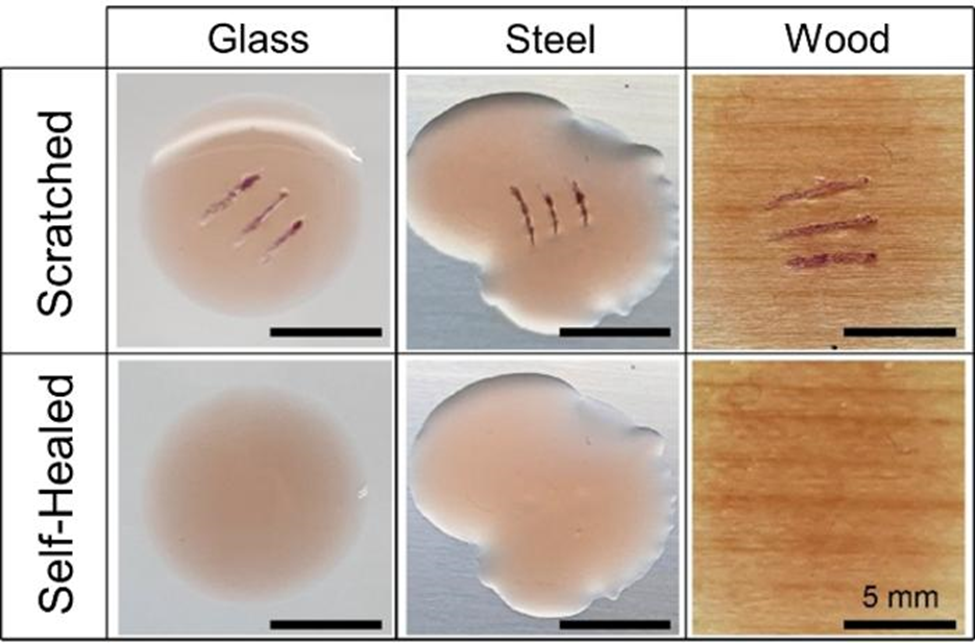 Some materials contain dynamic bonds that can break and reform. As a result, the material can naturally “reconnect” at the molecular level.